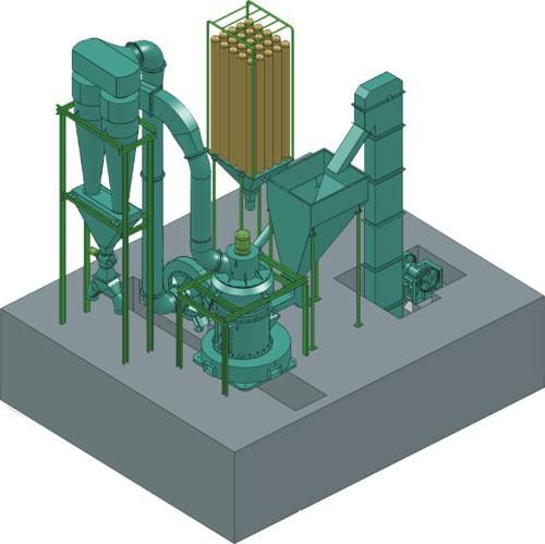 物料研磨后,風(fēng)機(jī)將風(fēng)吹入主機(jī)殼內(nèi),吹起粉末,經(jīng)置于研磨室上方的分析器進(jìn)行分選,細(xì)度過粗的物料又落入研磨室重磨,細(xì)度合乎規(guī)格的隨風(fēng)流進(jìn)入旋風(fēng)收集器,收集后經(jīng)出粉口排出,即為成品。風(fēng)流由大旋風(fēng)收集器上端的回風(fēng)管回入風(fēng)機(jī),風(fēng)路是循環(huán)的,并且在負(fù)壓狀態(tài)下流動(dòng),循環(huán)風(fēng)路的風(fēng)量增加部分經(jīng)風(fēng)機(jī)與主機(jī)中間的廢氣管道排出,進(jìn)入小旋風(fēng)收集器,進(jìn)行凈化處理。